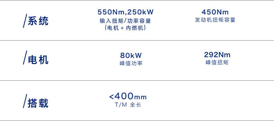 该混合动力系统以汽油发动机和一台电动机作为动力源,该电动机同时承担发电和提供动力的双重功能。